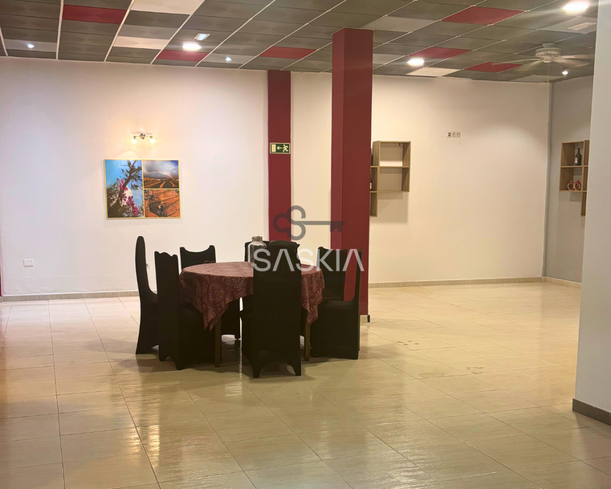 Con una fachada de 8 metros lineales y excelente visibilidad, el espacio se distribuye en una gran sala principal de 185 m², luminosa y versátil, una cocina equipada de 25 m², zona office, almacén, y cinco aseos, uno de ellos adaptado para personas con movilidad reducida.